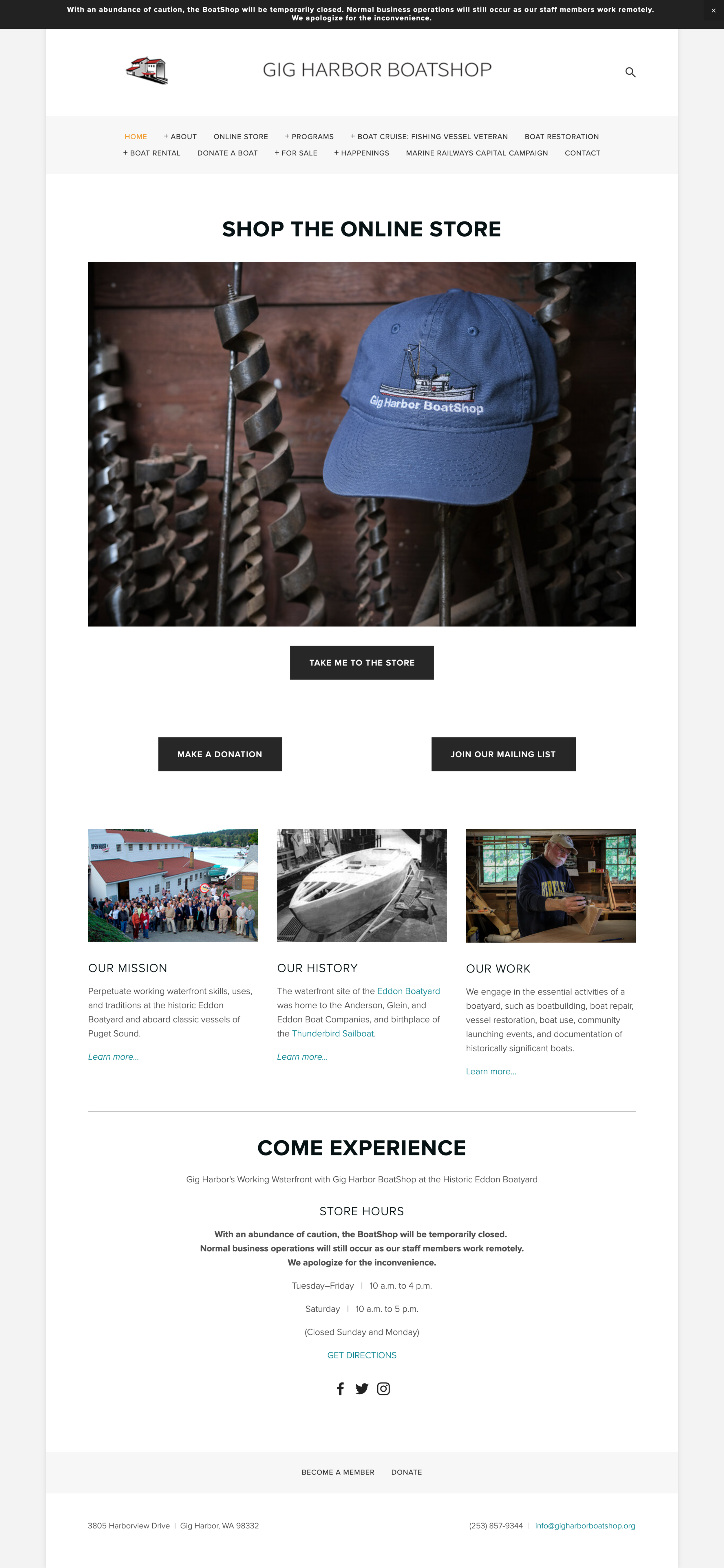 The primary goal of this website redesign was to create a clean, modern and visually appealing web presence that highlighted the mission of Gig Harbor BoatShop.
